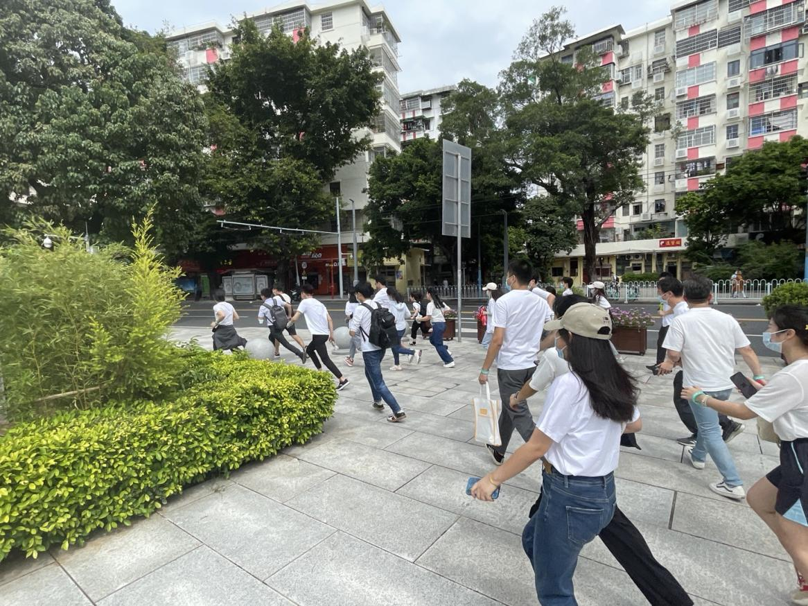本次活动共有3个参赛队伍,每队9人,以团一大广场为起点,途经中华全国总工会旧址、中国共产党广东区委旧址、广州农讲所旧址、杨匏安旧居等红色基地,在红色基地指定地点至少有8人以上与广金征信党支部旗帜合影,即为打卡成功。最先到达终点的队伍即为第1名,其余队伍依次排序。