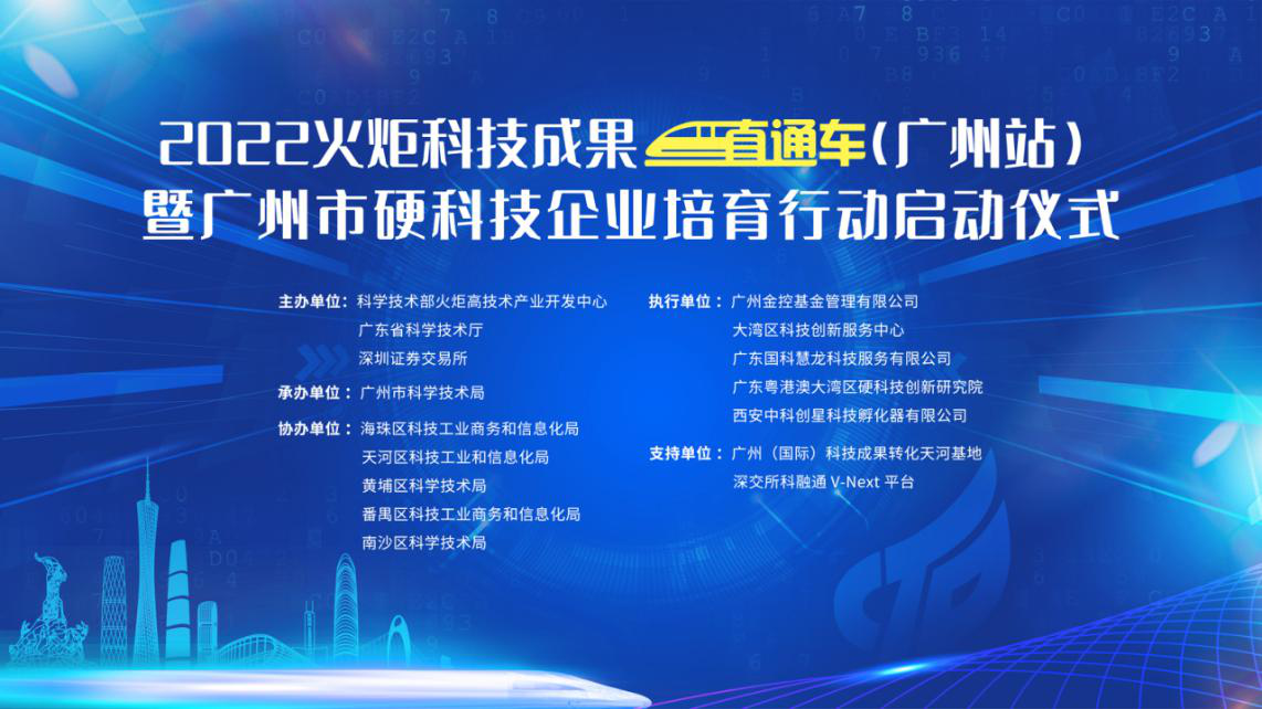 8月5日,由科学技术部火炬高技术产业开发中心、广东省科学技术厅、深圳证券交易所主办,广州市科学技术局承办,广州金控集团旗下广州金控基金参与执行的“2022火炬科技成果直通车(广州站)暨广州市硬科技企业培育行动启动仪式”(以下简称启动仪式)在广州(国际)科技成果转化天河基地国际会议中心成功举办。广州市科学技术局党组书记弓鸿午,广州金控集团党委书记、董事长聂林坤,广东省科学技术厅四级调研员斯恒,大湾区科技创新服务中心党支部书记、董事长秦海鸥,深圳证券交易所区域副主管牛铭泽,广东国科慧龙科技服务有限公司董事长夏雷,广东粤港澳大湾区硬科技创新研究院副院长刘浩一道按下仪式启动按钮,在与会领导和嘉宾的共同见证下,广州正式迎来国家级火炬“直通车”,树立起广州硬科技“风向标”。