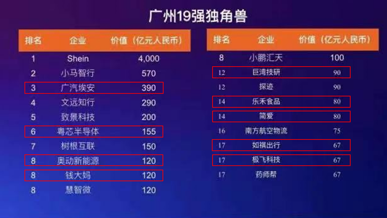 本次上榜企业奥动新能源是国内新能源车换电领域的头部企业,2021年被广州金控基金及合作伙伴引入广州;广汽埃安是广汽集团旗下纯电新能源品牌,纯电新能源车销量位于国内头部梯队;巨湾技研由广汽集团孵化,于2021年率先量产了XFC超充电池系列产品;如祺出行是扎根大湾区的智能网联出行平台,目前在大湾区核心城市的用户渗透率超30%;简爱酸奶是创新乳制品公司朴诚乳业打造的低温酸奶品牌,致力于为中产阶级消费群体提供天然纯净的乳制品;粤芯半导体是广东省本土自主创新企业,也是广东省目前唯一进入量产的12英寸芯片生产平台;钱大妈是国内社区生鲜行业的领军品牌,秉持“不卖隔夜肉”的理念在国内30多座城市完成布局;乐禾食品致力于打造完整的食品商业生态链,是农业产业化的国家重点龙头企业;极飞科技致力于将无人机、机器人、自动驾驶、人工智能、物联网等技术带进农业生产,助力构建无人化智慧农业生态。