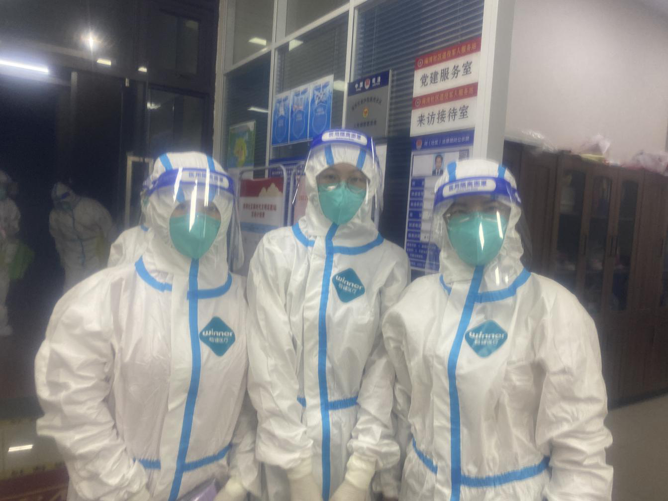 是日晚上九点半,她们顺利完成110人的检测任务后回到社区脱下防护服,都穿上同款“白条状”的衣服,尽管身躯疲惫,但也难掩脸上的坚毅和自豪。“平时自我感觉身体还挺好,可是穿上防护服挨家挨户走,我一度要呼吸不过来了,又热又闷,只感觉汗如水流,又不能揉擦,极其难受,有时差点晕过去了。”“实实在在体验到了,也亲眼见证了医务人员和社区工作人员的辛苦,大家加油,我们会胜利的。”“社区居民都很配合,感觉自己的付出被肯定了,必须坚持‘人民至上,生命至上’,很值得。”她们面露微笑地总结了任务完成后的体会,用实质行动诠释了金控人不畏艰险、笃力前行的精神和努力坚持的力量。