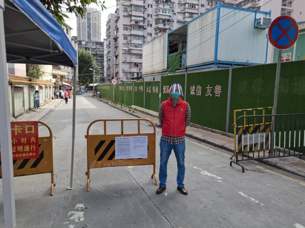 抗疫“老兵”、集团审计部总经理祝印红同志,从11月份居住地海珠区沙园街被封控后,再次披挂上阵,积极主动下沉社区,承担起社区关卡值守、核酸监测点查看绿码、测体温等任务,累计参加社区服务9天,以实际行动诠释共产党员的初心和担当。