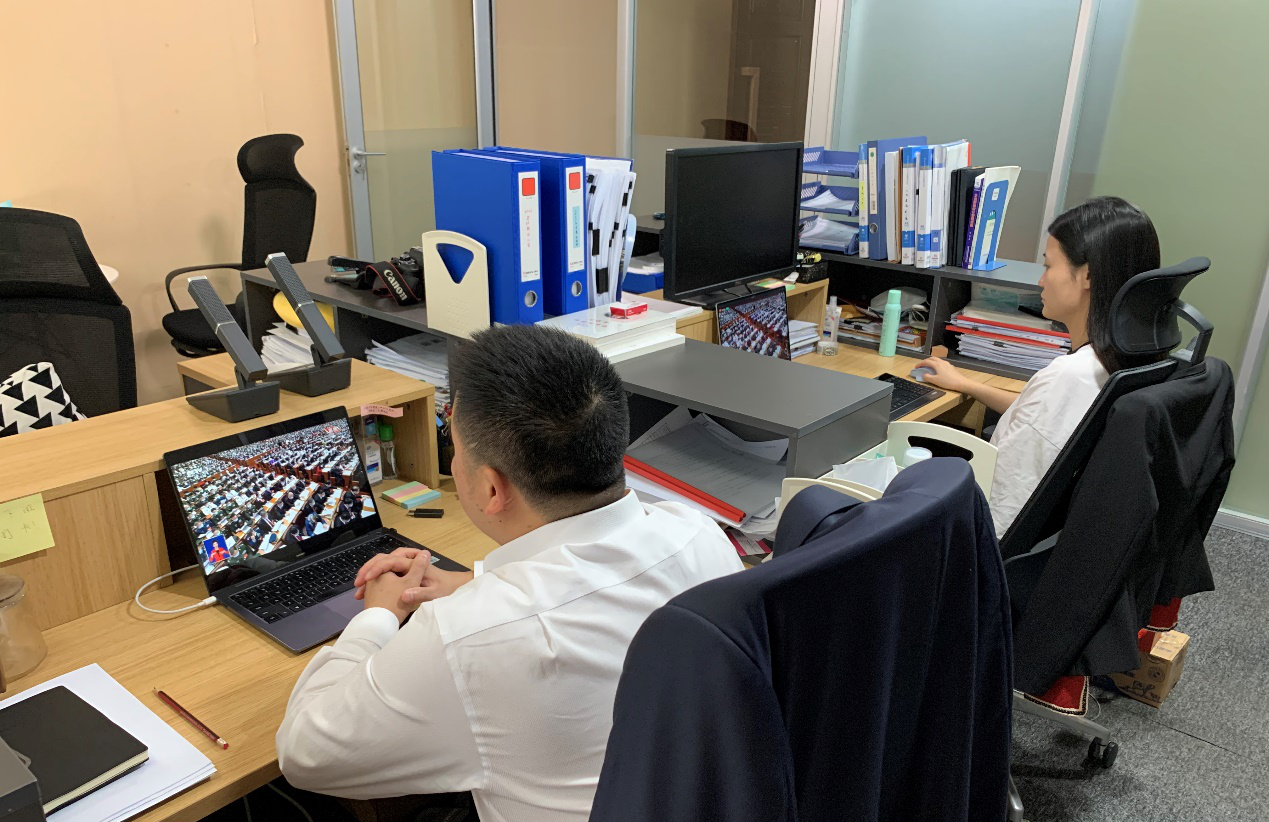 11月1日下午,为深入学习宣贯党的二十大精神,广州金控集团下属立根租赁党支部组织召开“第一议题”会议进行学习。为落实落细防疫要求,公司中层及以上员工在会议室集中学习,基层员工在工位通过视频学习,上海子公司全体员工视频参会。公司党支部书记领学二十大报告,中层及以上员工逐一谈认识、谈体会,并结合公司发展战略和各自岗位职责提出深入贯彻落实党的二十大精神的意见建议。