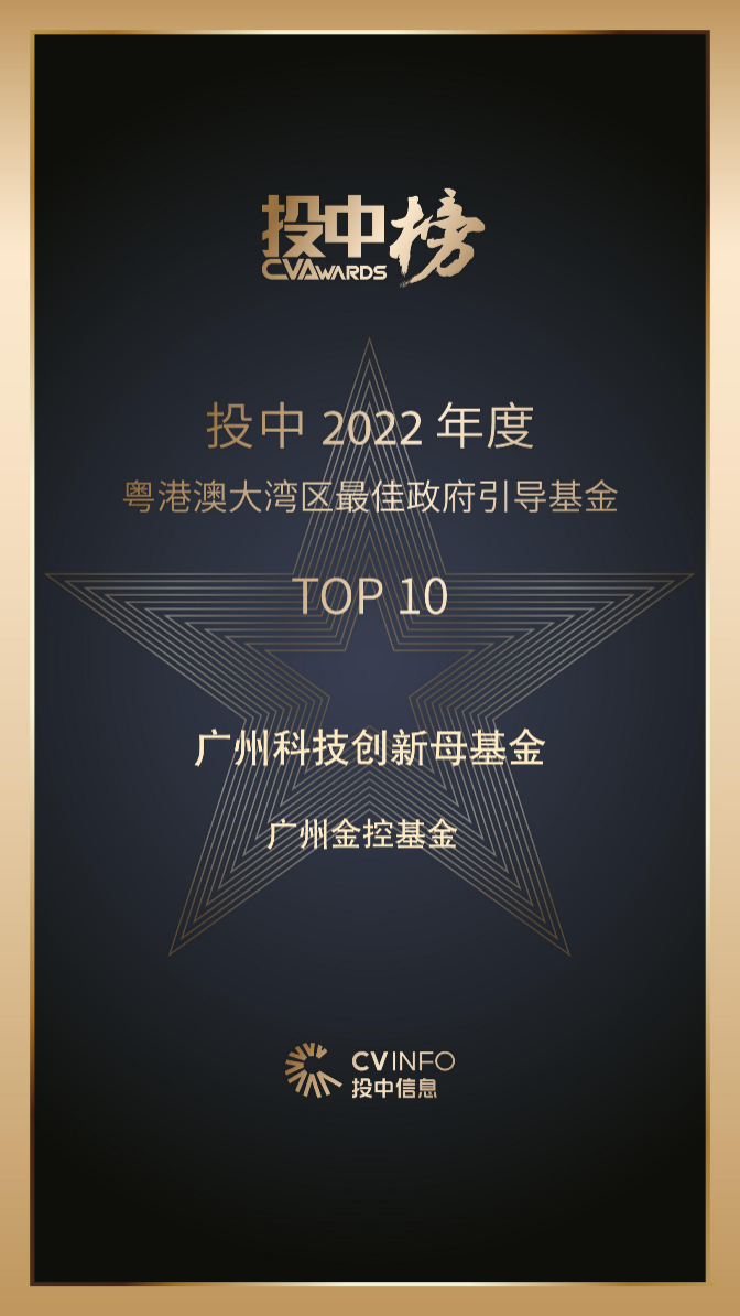 1月5日,投中2022年度粤港澳大湾区榜单隆重揭晓,广州金控基金受托管理的广州科技创新母基金(原广州科技成果产业化引导基金)荣膺“2022年度粤港澳大湾区最佳政府引导基金TOP10”,自2019年以来,已连续四年获此殊荣。