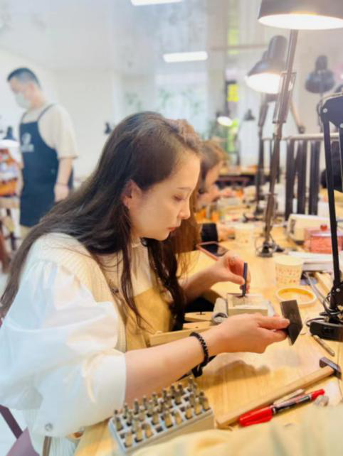 广永投资工会组织公司女职工开展了一场银饰手工体验活动,为自己定制一份专属浪漫。在银匠师的指导下,大家充分发挥艺术想象力,从设计、加热、刻字、打磨、焊接、清洗、做旧和抛光等环节,一步步亲手创作属于自己独一无二的作品。带着手作的独特质感与温度,在叮咚的敲击声中,冰冷的金属在她们手中展示着柔软生动的一面,不管是一串值得纪念的数字,还是一个刻骨铭心的名字,大家将心中的构思逐渐打造成型,手中的作品承载着制作者的独家心意。