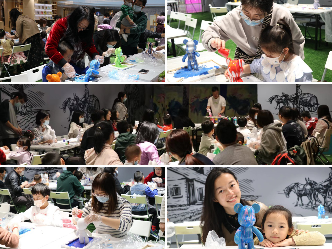 调色、描摹、勾勒,在纯白的道具身上,大家用自己对色彩的感知和偏好,精心配色,在制作中感受色彩碰撞带来的灵动鲜活、无限魅力。女职工们在创作之中体验亲子美好时光,共同绘制一个个创意十足的流体熊作品。
