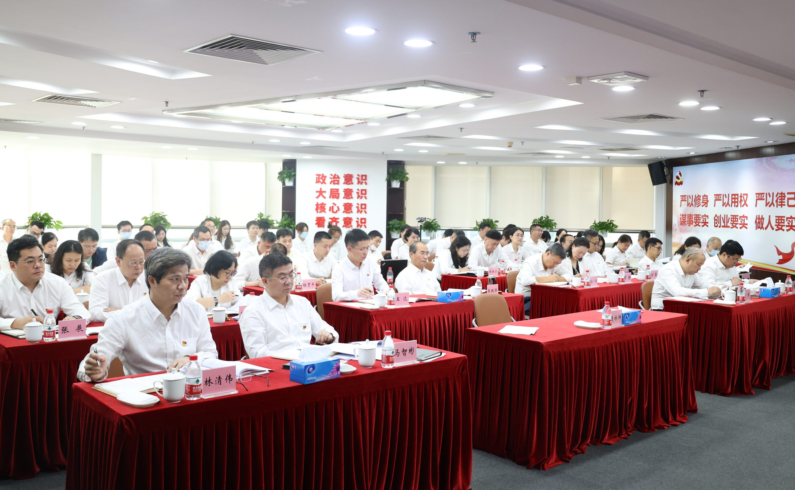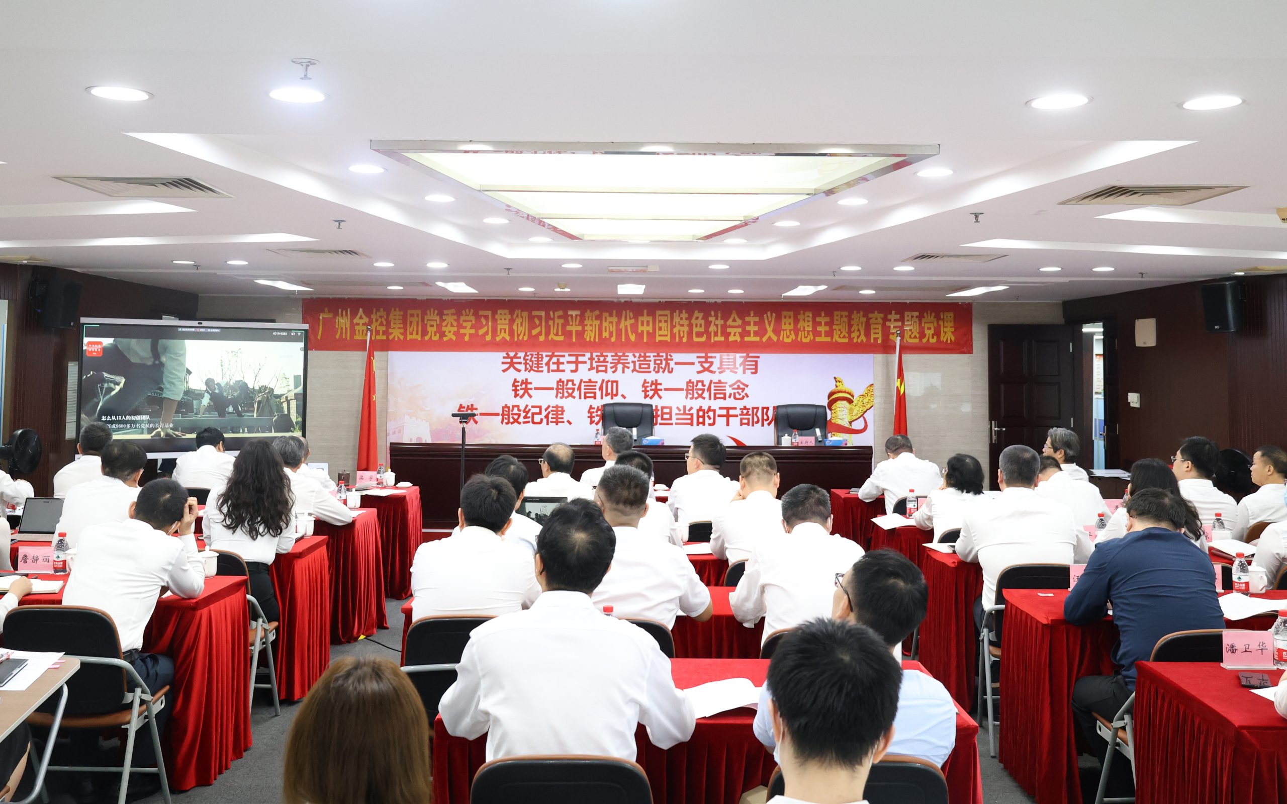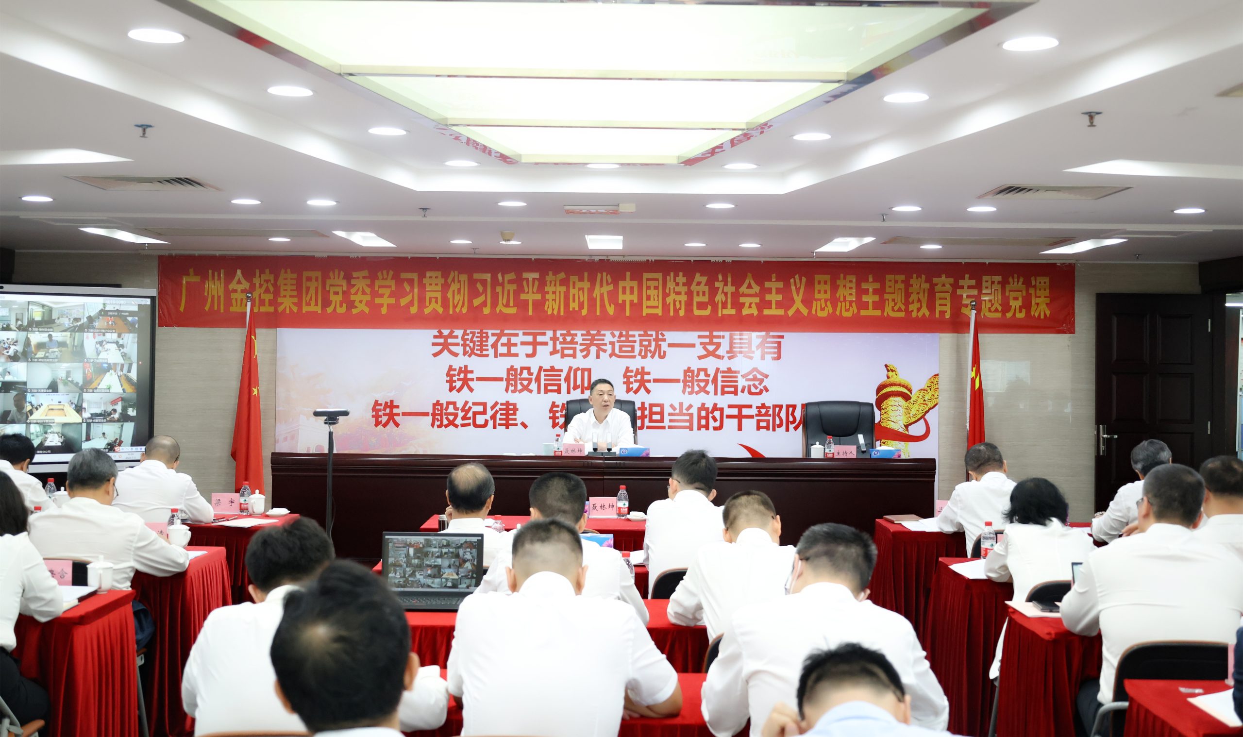 为热烈庆祝中国共产党建党102周年,进一步增强党的凝聚力、向心力,推动主题教育走深走实,7月2日下午,广州金控集团党委书记、董事长聂林坤为集团全体党员干部讲授主题教育专题党课,同时作集团主题教育第4期读书班开班讲话。本次党课以现场会议和线上视频形式召开,集团本部设主会场,各下属企业设分会场,近千名党员干部共同参加了党课学习。集团党委副书记、董事马智彬主持会议。
