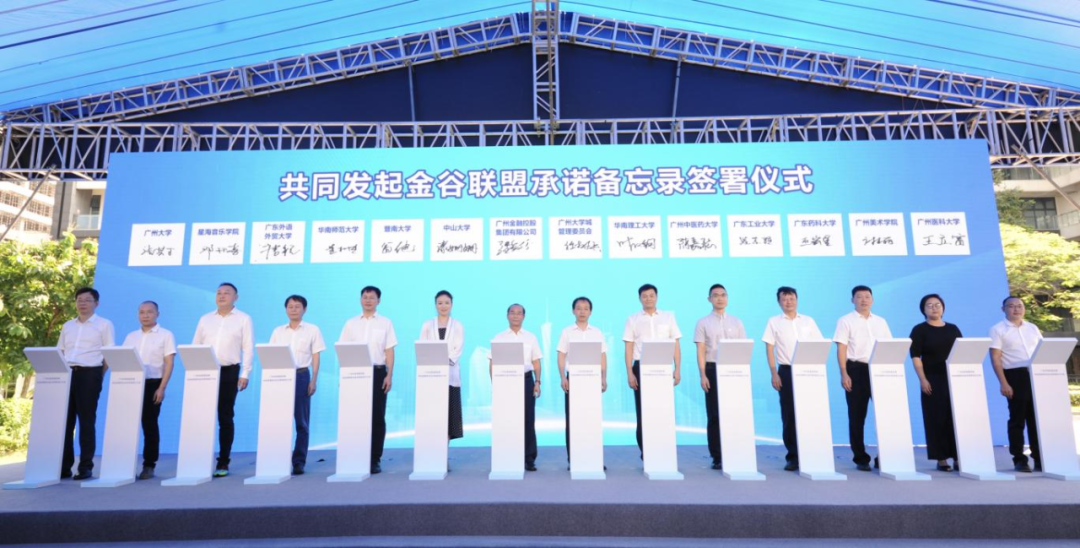 活动当天,广州金控集团与广州大学城管委会签署战略合作协议,并与广州大学城12所高校及受邀参加的国内知名风投创投机构代表签署《广州市高质量发展科技成果转化金谷联盟合作备忘录》。