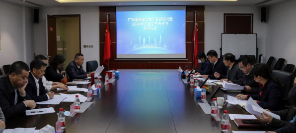 为深入学习贯彻习近平总书记关于安全生产的重要指示批示精神,统筹高质量发展和高水平安全,进一步抓实抓细企业安全生产责任制,在更高站位、更高层次、更高起点上做好新一年的安全生产工作,1月10日下午,广州金控集团旗下广永国资举行安全生产专题培训暨2024年安全生产责任书签约仪式。广永国资领导班子成员,本部各部门负责人、物业管理部和资产管理部全体员工,下属企业凤凰农工商、东方农工商、广永置业以及托管企业广永科技相关负责人、安全生产联络员共26人参加签约仪式。