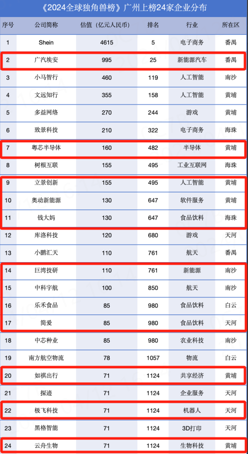 广州金控基金所投12家上榜企业包括广汽埃安、如祺出行、极飞科技、中科宇航、钱大妈、粤芯半导体、巨湾技研、简爱、乐禾食品、奥动新能源、立景创新及云舟生物等明星企业,覆盖了生物医药、新一代信息技术、新能源、高端制造及大消费等广州重点战略新兴产业领域。