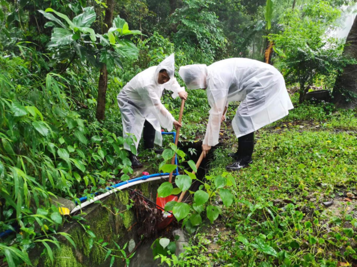 雨后复查,保障物业正常运行。雨势渐歇,喻志平等人一刻不歇,马上投入到雨后检查工作中。他们巡查上下张屋、水库和出租物业等区域,走访十几家物业租户,一一问询,最大程度解决租户困难。他们奔忙在水库、林间、山道上,清理狂风刮折的树干、路面碎石淤泥和残枝落叶,及时疏通道路,保障群众出行安全顺畅。他们细致检查电路设施设备、排水系统、避雷设备,确保设备设施运行正常……直到晚上11点才“鸣金收兵”。那一天,喻志平等人在各物业和山上一刻不停地搬、抬、运、扛、扫,任泥巴裹满裤腿,任汗水和雨水浸透全身,他们忙碌的身影在雨中既坚定又真实。