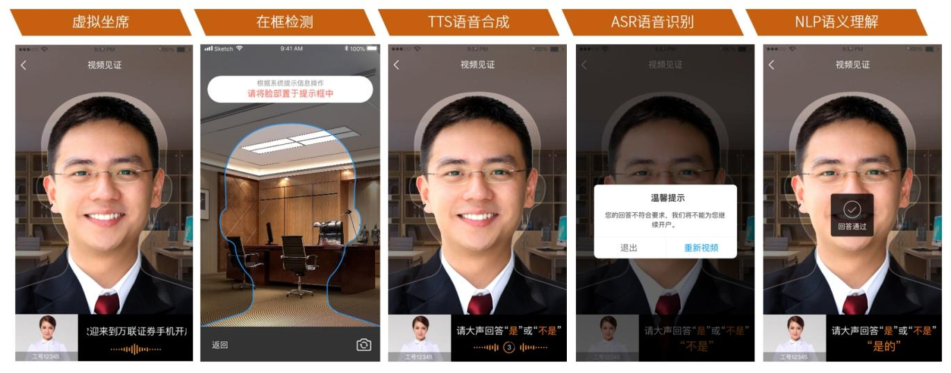 粤港澳大湾区经济基础优,居民财富体量大,万联证券基于对该客群特征和需求的深刻理解,首创性地采用虚拟数字人,服务于用户注册、登陆、身份确认、开户资料填写、协议签署、视频见证、风险评测、在线服务、智能引导等财富业务办理环节,提供个性化的粤语、英语服务,针对港澳居民身份证件进行识别、检测、复核等算法优化,与业内同类业务办理现状相比,万联证券“数智人视频见证”的智能化、差异化服务优势更加明显。
