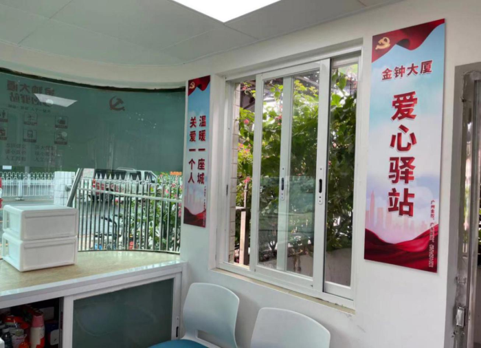 设立“爱心驿站”,为户外劳动者解决“四难问题”。因地制宜将金钟大厦闲置保安亭更新改造为“爱心驿站”,配备公共卫生间、休息座椅,提供热水、雨伞、口罩、应急药品和手机充电设备,帮助附近的环卫工人、快递员、送餐员等户外工作者解决休息难、饮水难、如厕难、充电难问题,打造户外劳动者遮风避雨的“爱心港湾”。目前,“爱心驿站”已为户外劳动者提供9000余人次的贴心服务。
