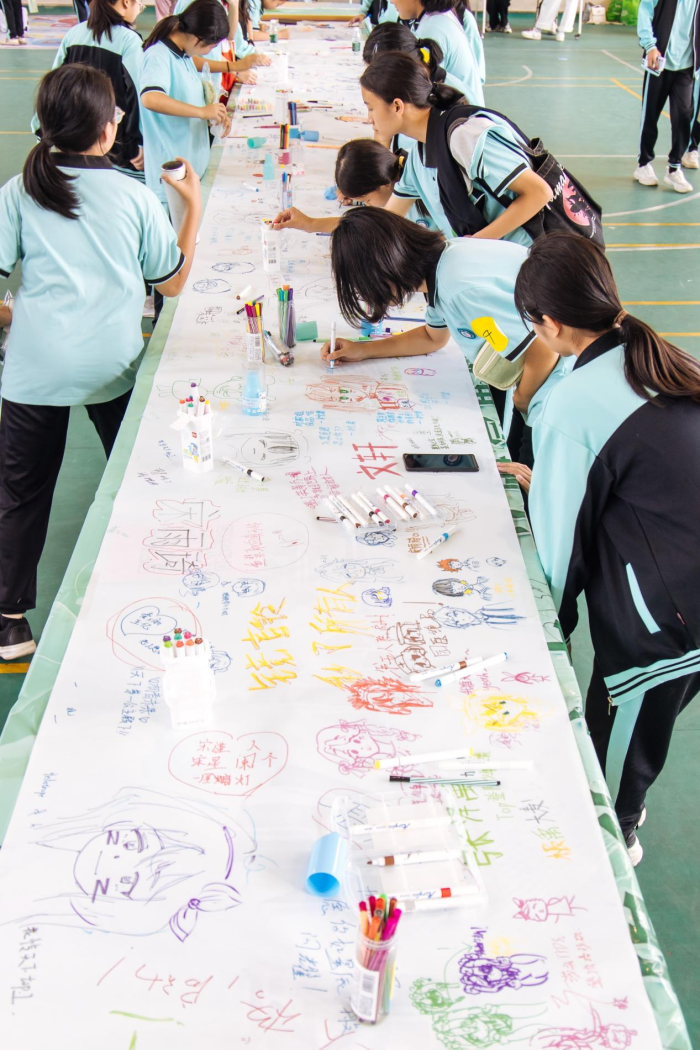 在健康集市环节,家医杂志社特别邀请了广州市越秀区穗青社会工作服务中心、广州市花都区炭步社工站,为学生组织了包括“消防安全我最行”安全教育飞行棋、“百米画卷”健康主题百人创作区、“我就是我不一样的烟火”情绪调色盘等健康市集活动,通过打卡集章等方式,激发学生参与热情,让学生在游戏中获得安全知识、健康知识,帮助学生认清自我、释放情绪压力。