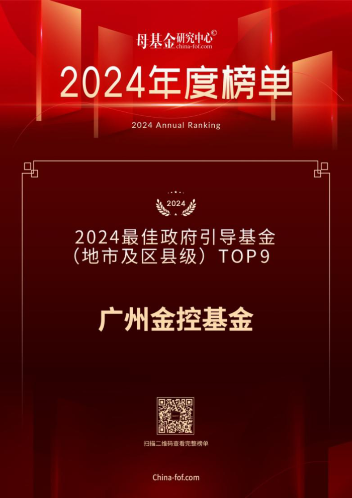 近日,母基金研究中心2024年度榜单揭晓,广州金控集团旗下广州金控基金荣获“2024最佳政府引导基金(地市及区县级)TOP9”。