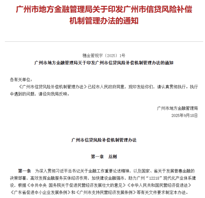 9月18日,在广州担保集团的协助推动下,《广州市信贷风险补偿机制管理办法》正式出台。风险补偿机制是政府性融资担保体系的重要一环,该办法的出台对助力广州市政府性融资担保提高风险抵御能力、促进政府性融资担保机构行稳致远有着重要意义。