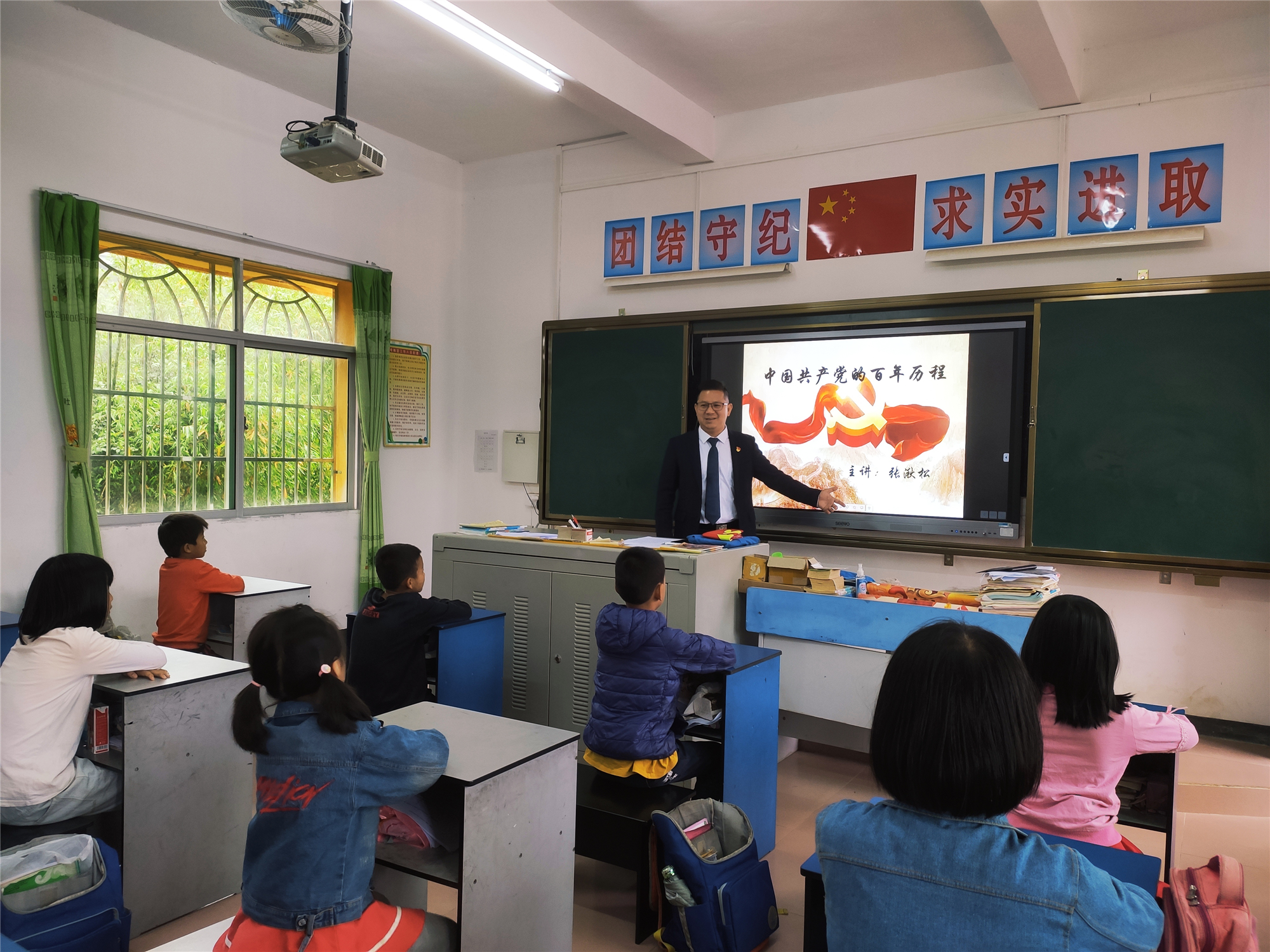 广州金控驻村工作队深刻认识开展党史学习教育的重大意义,以高度政治自觉学习党史,以史鉴今、资政育人,精心组织专题学习和专题培训,为小学生上党课、讲党史;引导孩子们了解到现在的美好生活是一代又一代的共产党员用自己的青春、甚至生命打拼来的;鼓励孩子们要从历史中汲取继续前进的智慧和力量,树立为人民群众创造更美好生活的信念,认真学习,提升素养,做德智体美劳全面发展的社会主义建设者和接班人。