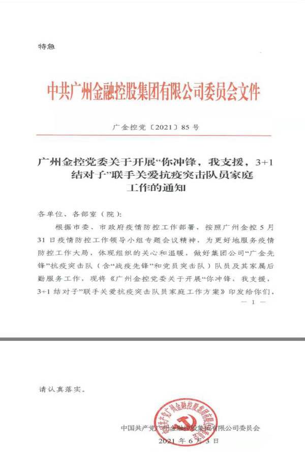集团出台“3+1”结对关爱行动方案后,集团本部和万联证券、广永国资、广金资本、广州再担保、广金资产、生物工程中心、广金征信、大业信托等企业迅速行动起来,在文件发出后的半天内,全部成立了“3+1”结对关爱微信群,集团本部相关部室、下属各企业积极参与结对关爱行动。集团抗疫突击队员们纷纷表示,感谢集团党委实施的“3+1”结对关爱行动,集团的做法传递出了浓浓的爱意,很暖心,备受鼓舞。“战疫先锋”队长金志宏坚定地表态:“请集团放心!全体队员就一句话:战疫有我,有我必胜!”女队员李艺芬说道:“感谢集团对我们的高度重视和关怀,有你们在后面的大力支持,才有我们义无反顾地冲锋陷阵!”