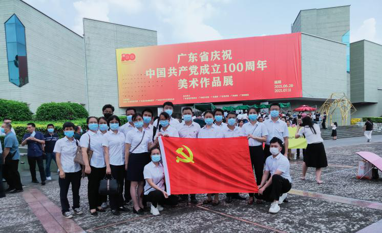 为进一步推进党史学习教育走深走实,丰富党史学习形式,引导广大党员干部学深学透党的光辉历史,巩固党史学习教育成果,7月9日下午,广州金控集团下属有林生态党支部组织全体党员干部和青年员工代表20人前往广东美术馆参观“广东省庆祝中国共产党成立100周年美术作品展”,重温党的百年光辉历程。