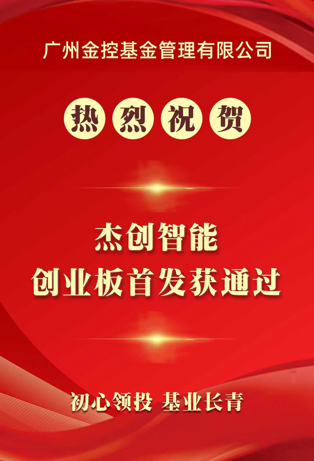7月16日,广州金控旗下广州金控基金管理有限公司(下称广金基金)投资企业——杰创智能科技股份有限公司首发申请获通过,将于深交所创业板上市。