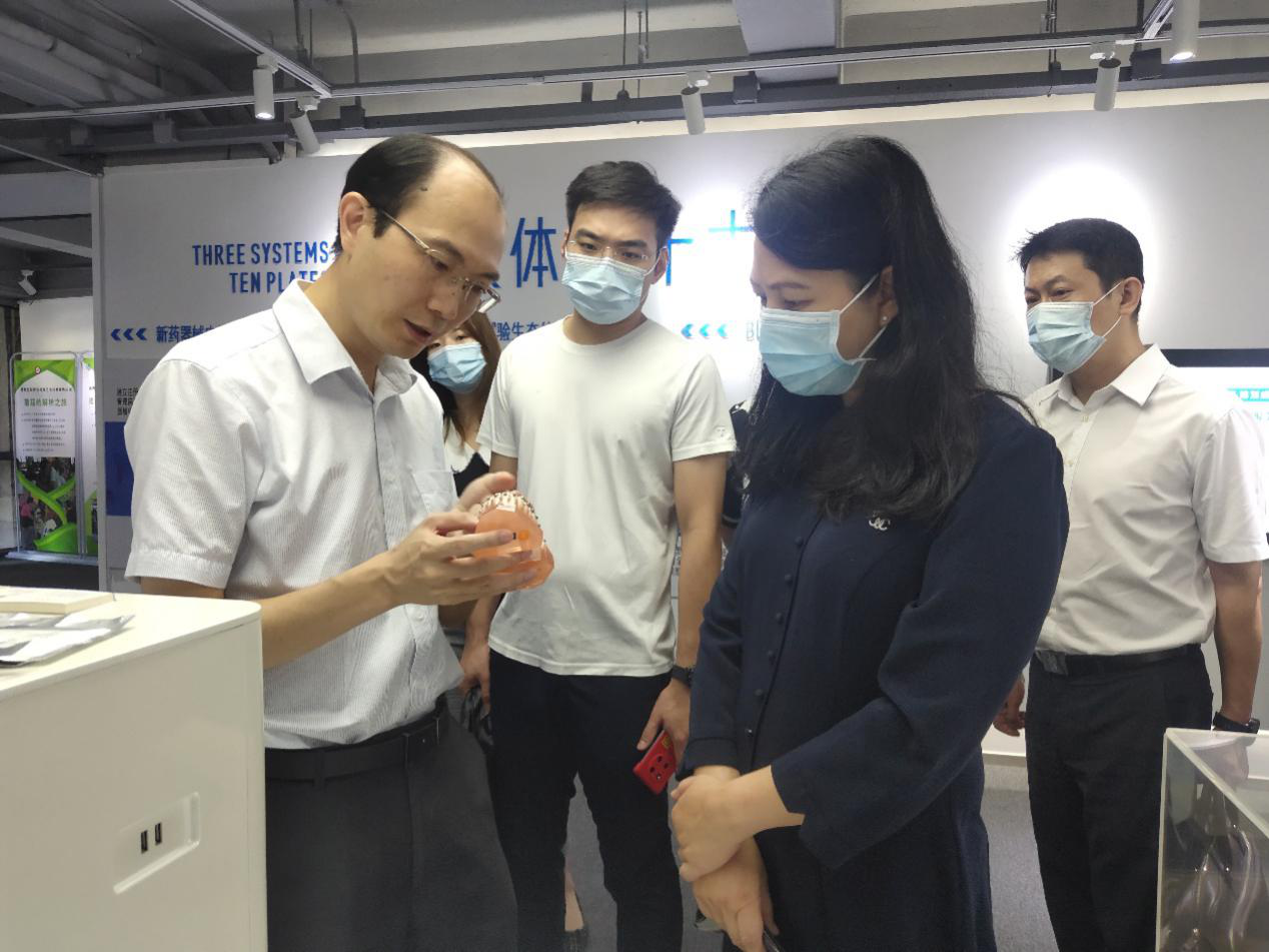 近日,广东省卫生健康委员会副主任周紫霄、医政医管处副处长郭未艾、科教处副处长林海波一行调研广州市创新药物临床试验服务中心(下称服务中心),并召开了座谈会。越秀区副区长陈烯、广州高新区黄花岗科技园党工委书记雷金源以及服务中心执行机构——广州金控集团旗下广州生物工程中心有限公司有关负责人参加本次调研。
