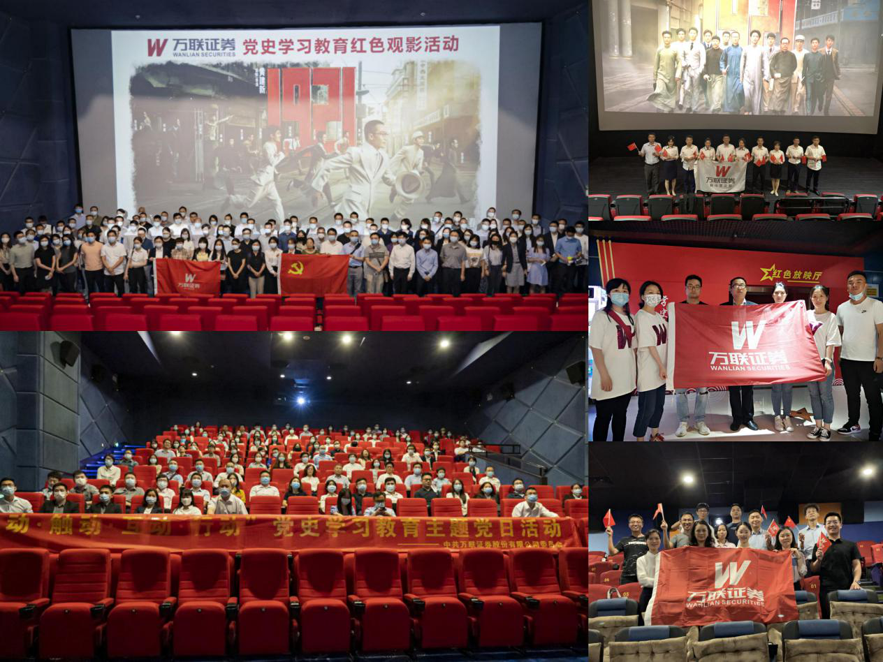奋斗百年路,启航新征程。为庆祝中国共产党成立100周年,推进党史学习教育进一步走深走实走心,近日,广州金控集团下属万联证券以“心动·触动·互动·行动”为主题,组织公司各部室、子公司、分支机构近600人在各地就近开展红色观影活动,通过集中观看红色电影《1921》,进一步激发全体干部职工爱党爱国情怀和工作热情,回顾党的初心历程,传承党的奋斗精神,带头学党史、悟思想、办实事、开新局,为“十四五”规划开好局、起好步贡献更大力量,以优异成绩献礼中国共产党成立100周年。
