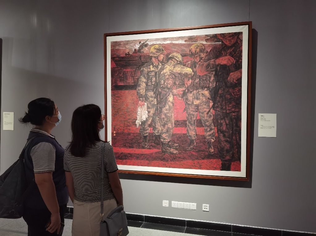 结合解说员的讲解,大家在作品前驻足观看、深入交流,一幅幅珍贵的美术作品,一幕幕感人的历史场景,记载的是一个民族苦难与辉煌的岁月,折射的是一个政党光荣而伟大的历史。