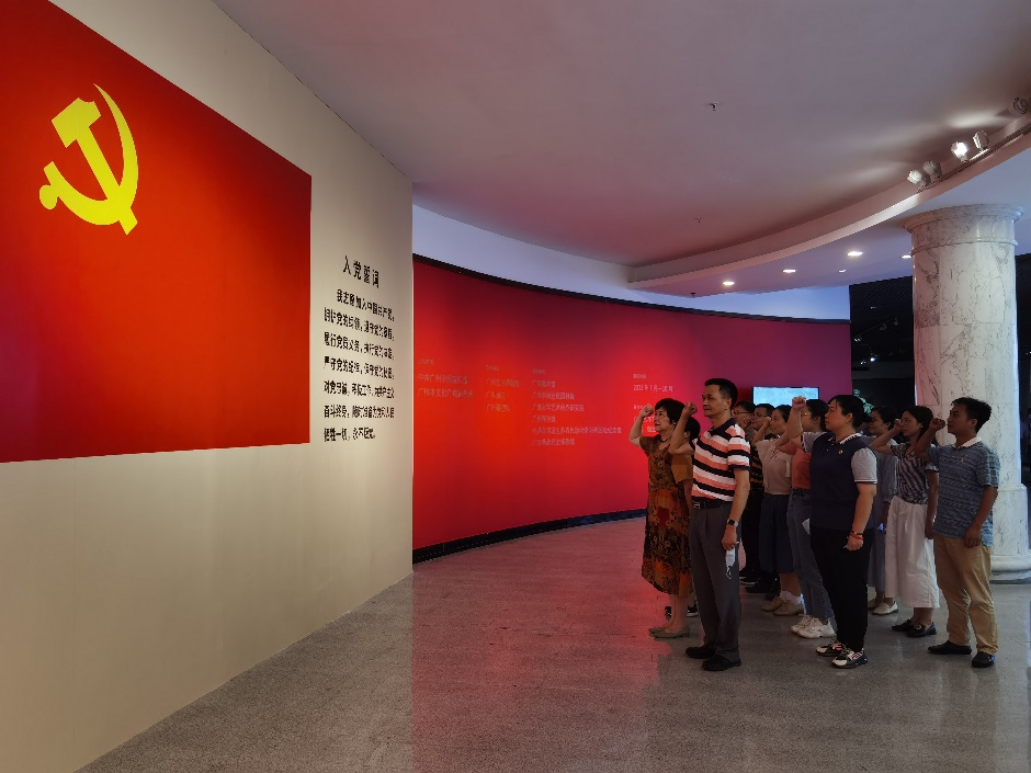 为深入学习贯彻习近平总书记在庆祝中国共产党成立100周年大会上的重要讲话精神,高标准高质量推动党史学习教育走深走实走心,8月6日下午,广州金控集团下属生物工程中心党支部、工会与结对共建单位中行广州蓄能大厦支行党支部联合开展党史联学活动,组织双方党员干部、青年职工到广州艺术博物馆参观学习“广州美术经典中的党史展”和“广州市庆祝中国共产党成立100周年楹联书法展”。