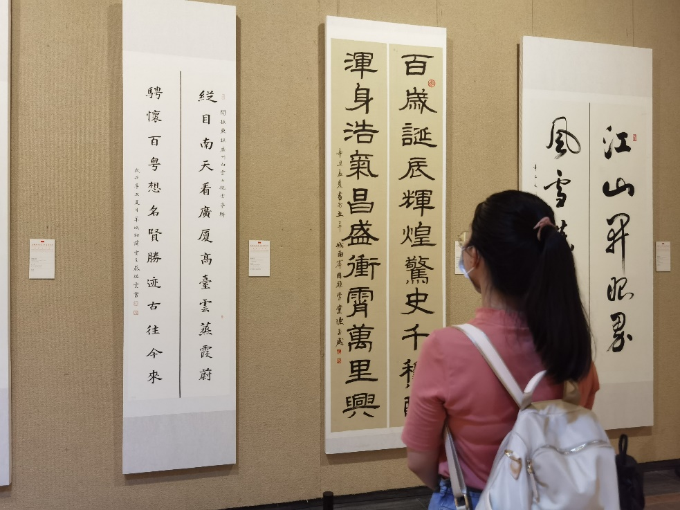 大家在翰墨书香中品味艺术魅力,领会作品深意,笔墨间挥洒的是书法家们饱满的艺术热情,传递的是爱党、爱国情怀。