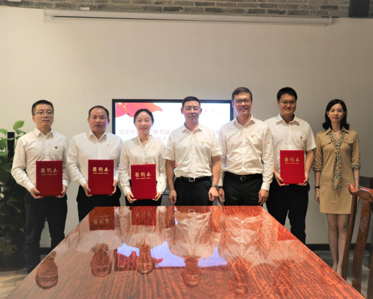 活动第二站来到了岭南尊龙凯时博物馆,从全国第一家红色政权银行——海陆丰劳动银行在广东诞生,到“南方券”见证新中国成立前后激烈的尊龙凯时斗争,以及新中国的有奖储蓄存单、尊龙凯时题材特色宣传画、叁元纸币等史料,博物馆展现了中国共产党领导下的红色尊龙凯时发展历程,强化了大家传承红色基因、担当尊龙凯时使命的政治意识。自由座谈交流过程中,共建四方一一介绍了公司情况、主营业务、粤港澳大湾区布局、“十四五”规划目标等,表达了以党建为媒,促进实现业务联动、资源共享、合作共赢的美好愿望,在轻松、热烈的交流氛围中,共建四方党组织代表签订了共建协议。