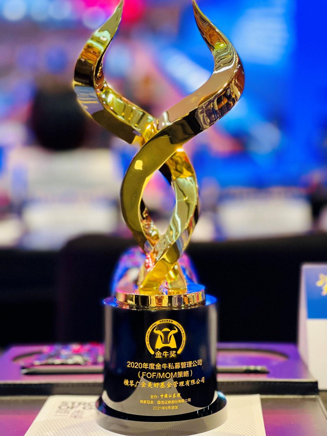 9月28日上午,由中国证券报社主办的“第十二届中国私募金牛奖颁奖典礼”在上海举行,广州金控集团旗下横琴广金美好基金管理有限公司(下称广金美好基金)凭借优秀的产品业绩表现,荣获“金牛私募管理公司(FOF/MOM策略)”奖。这是广金美好基金成立5年来第4次斩获金牛奖,同时广金美好基金也是获金牛奖最多的FOF机构。