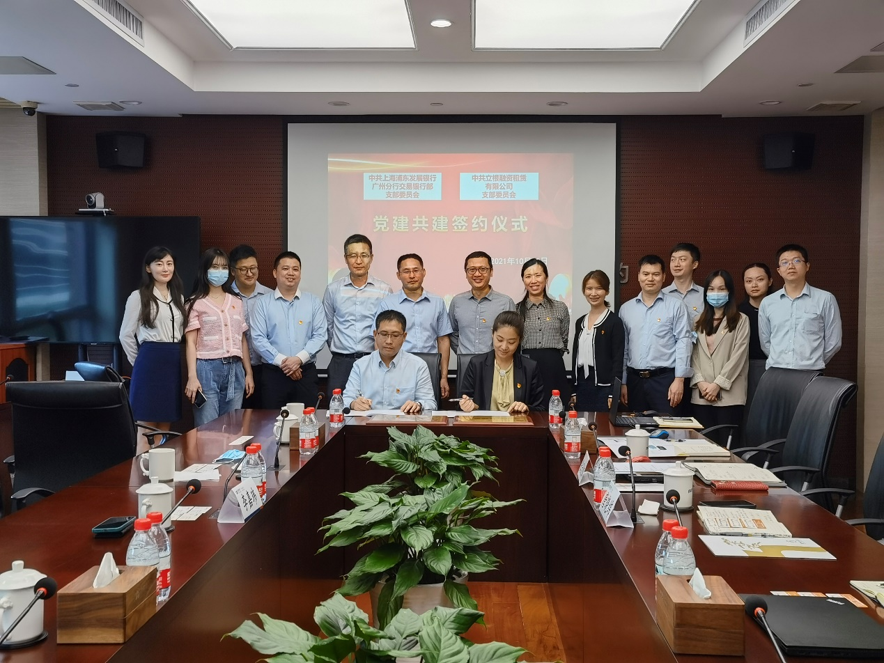 10月20日,广州金控集团下属立根租赁党支部与浦发银行广州分行交易银行部党支部在浦发银行广州分行七楼花城厅举行“党建共建”签约仪式,共建双方公司领导、党建活动负责人、公司部门负责人、支部党员参加活动。