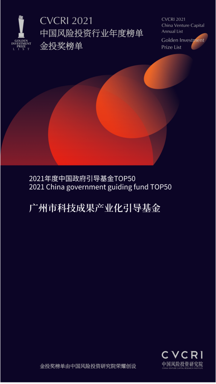 11月9日,“CVCRI·2021中国风险投资行业年度榜单·金投奖榜单”正式揭晓,广州金控集团旗下广州金控基金管理有限公司(下称广金基金)管理的广州市科技成果产业化引导基金(下称科技引导基金)再次入榜“2021年度中国政府引导基金TOP50”。这是科技引导基金连续三年登上金投奖榜单。