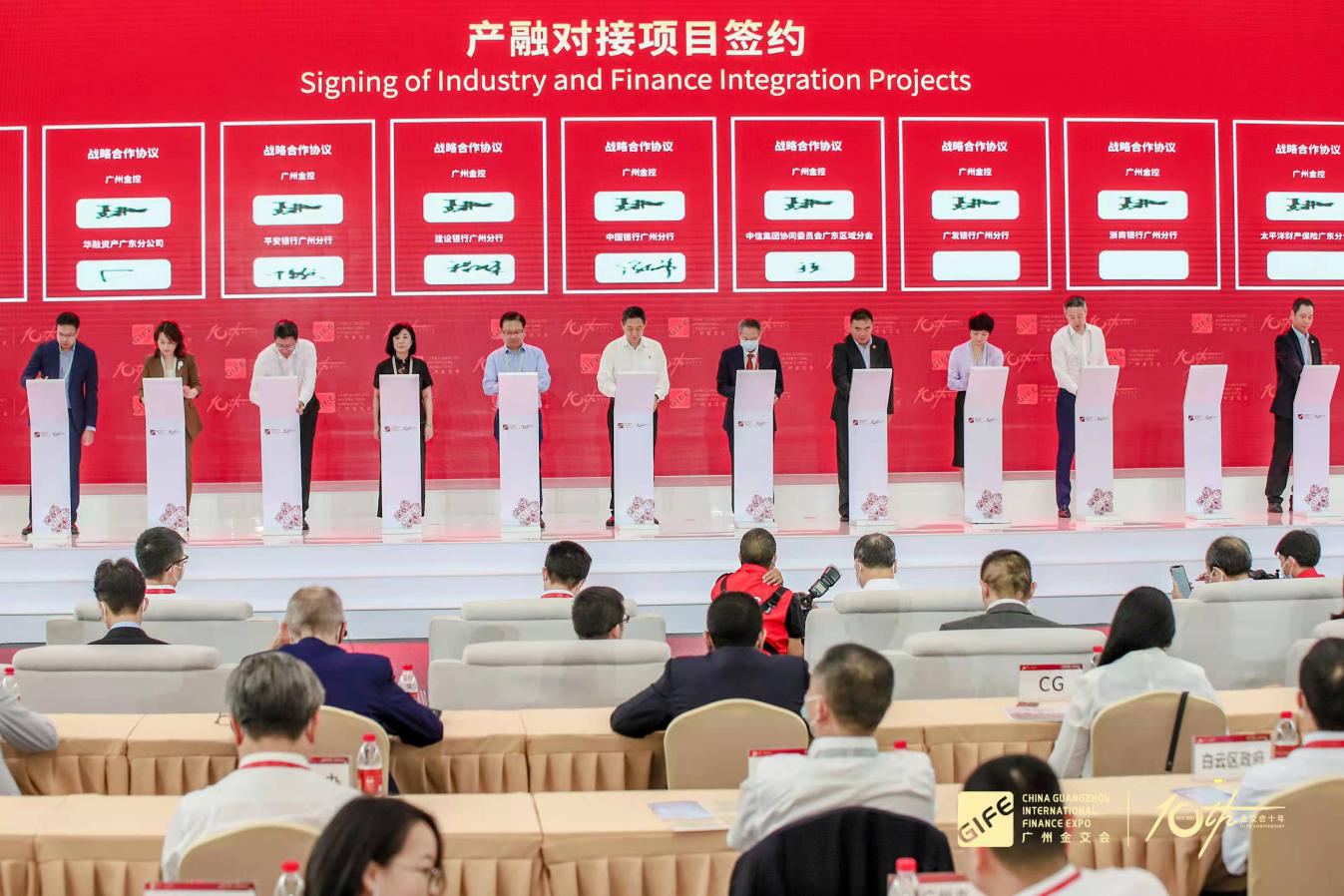 在第十届金交会上,广州金控与11家驻穗尊龙凯时机构集体签订战略合作协议