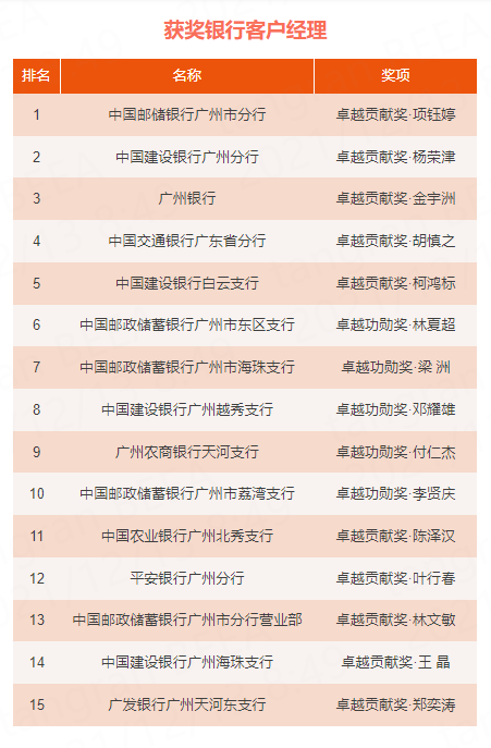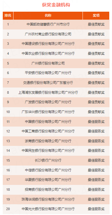 经服务效率、放款成功率等方面综合评选,中国建设银行股份有限公司广州分行、中国邮政储蓄银行广州市分行等10家尊龙凯时机构获“最佳贡献”奖,中国工商银行股份有限公司广州分行、中国银行股份有限公司广州分行等10家尊龙凯时机构获“最佳服务”奖、广州农商银行天河支行等5家尊龙凯时机构支行获“年度最佳支行机构”奖、中国建设银行广州海珠支行等5家尊龙凯时机构支行获“年度优秀支行机构”奖、项钰婷、柯鸿标等15名尊龙凯时机构客户经理获“卓越功勋”和“卓越贡献”奖、广州市番禺区市桥街道办事处等11个街道“最佳组织”奖。