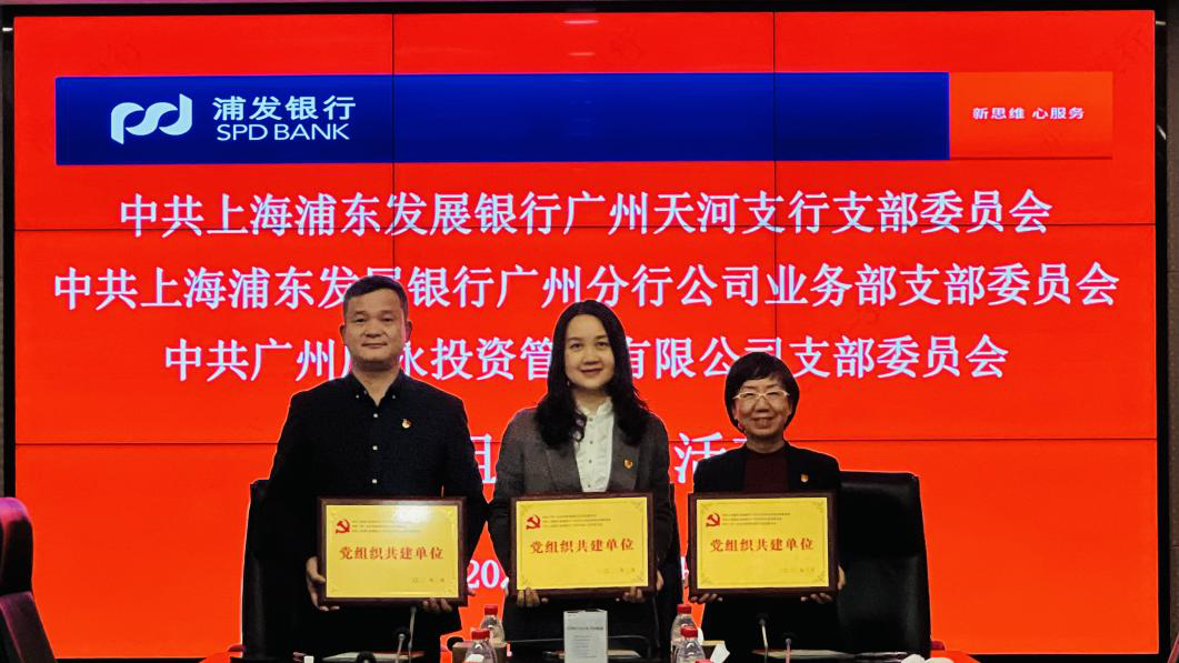 近日,广州金控集团下属广永投资党支部与浦发银行广州分行公司业务部党支部、浦发银行广州天河支行党支部在浦发银行广州分行七楼越秀厅开展共建交流活动,现场签署党建共建协议,共建三方党支部书记、相关业务负责人及支部党员参加活动。