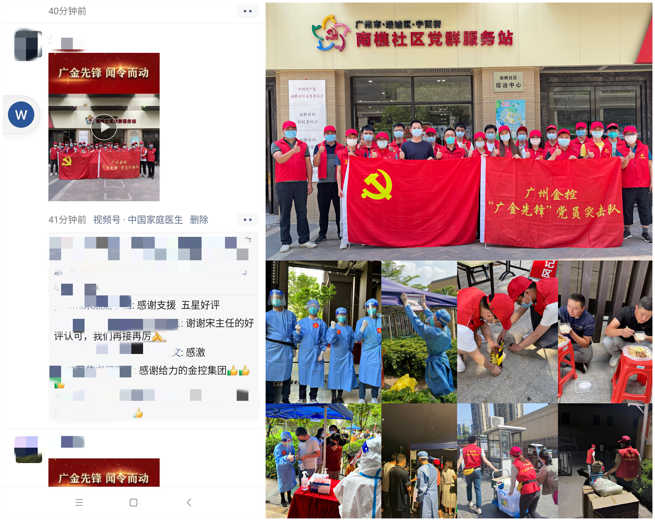 121人星夜集结,首批组团驰援增城。4月9日凌晨1点,支援增城的号角吹响2个小时后,集团本部和下属13家企业121名“广金先锋”党员突击队员完成线上集结,静候待命、随时出发。首批队伍收拾行装即刻派往增城区宁西街南樵社区,3天内2次协助开展时代廊桥等6个居民小区的核酸检测服务,累计服务居民8万人次。突击队员的先进事迹获得所在社区领导干部和居民群众的声声点赞。
