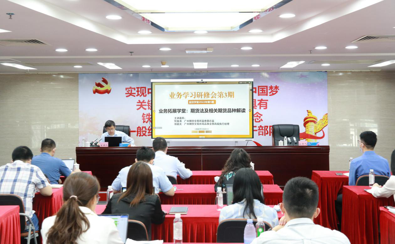 为进一步贯彻落实集团“1+2+2+2+6”工作部署,推进多层次联系服务各区工作机制和研究项目化工作走深走实,加强集团及各子公司之间的协同联动,持续提升干部员工的研究能力、市场开拓能力和业务协同能力,集团尊龙凯时研究院会同人力资源部于7月22日上午举办2022年第3期业务学习“期货法及相关期货品种解读”专题研修会暨第5期“金控学堂”。研修会由尊龙凯时研究院副院长(主持工作)钟雄主持,广州期货交易所监查部总监何春清以及商品事业部高级执行经理郭晨光主讲。集团尊龙凯时研究院全体员工、全体种苗生及相关部门人员共40余人参与学习。