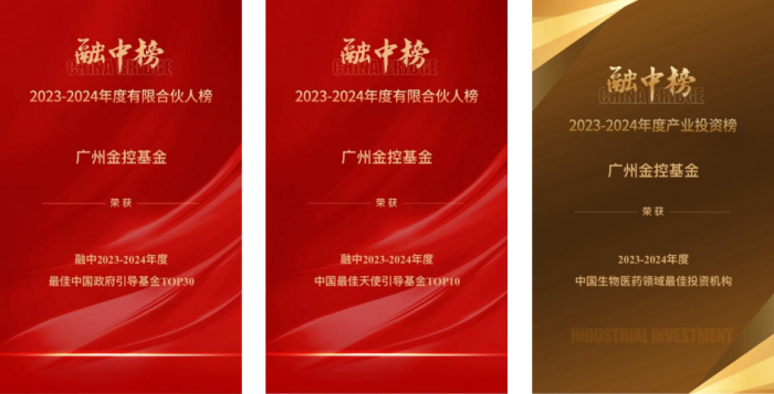近日,融中2023-2024年度榜单盛大发布,广州金控基金喜获“2023-2024年度最佳中国政府引导基金TOP30”“2023-2024年度中国最佳天使引导基金TOP10”“2023-2024年度中国生物医药领域最佳投资机构”等多项荣誉。