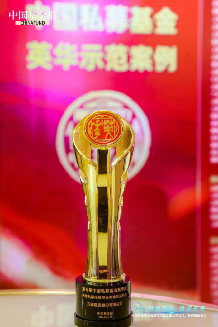 2024年7月10日,由《中国基金报》主办的“2024中国资本市场发展论坛暨上市公司论坛、私募基金论坛”在上海举行,广州金控集团旗下万联证券荣膺第九届中国证券私募基金英华示范案例“优秀私募托管成长券商示范机构”奖项。