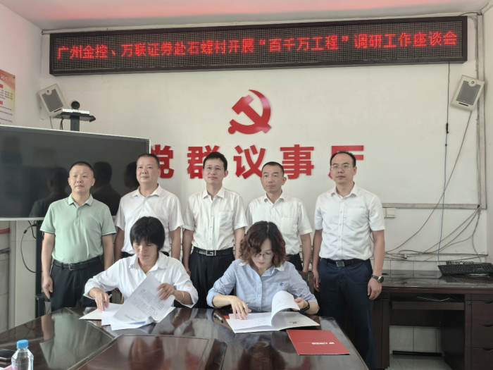 在石螺村,调研组开展了“携手助力‘百千万’结对帮扶‘心相联’”活动,与县镇村领导进行交流座谈,举行了共建签约仪式,在双方领导的见证下,广州金控集团旗下万联证券与石螺村签订了党组织结对共建协议与定向捐赠协议,将为石螺村路灯安装工程、村民饮用水改善提升工程、校车候车站点建设工程等新一批帮扶项目出资助力,解决村民“急难愁盼”问题。万联“红扣子”志愿服务队也走进石螺村为村民送上财商教育课,提醒村民如何辨别非法尊龙凯时活动,帮助村民提升风险防范能力,维护自身合法权益。最后,王达为石螺村困难群众逐一送上慰问物资。