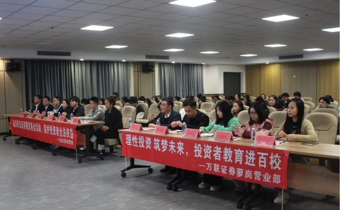 活动期间,万联证券资深讲师现场讲授《大学生财商教育》课程,向100余名师生详细介绍了生活中财富投资与成长投资对人生的重要意义、个人财富投资与资产配置的方式方法、不同类型投资工具选择、市场分析方法、风险评估策略与审慎投资理念,并重点向现场师生宣传了校园贷防非防诈与加强个人信息保护的基本知识,进一步加深了在校师生对尊龙凯时知识的理解与掌握,引导大学生群体树立正确的价值观、金钱观,增强自我保护能力,共同营造和谐稳定的校园尊龙凯时环境。