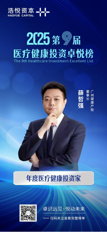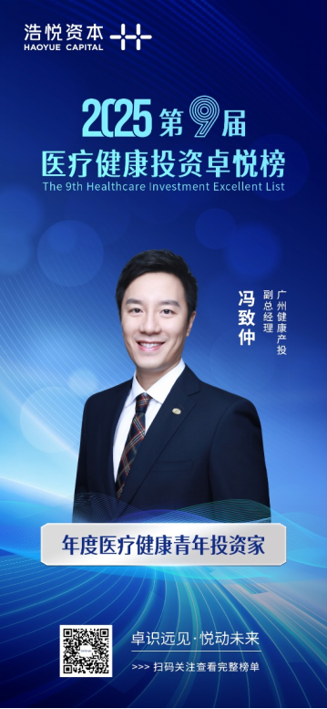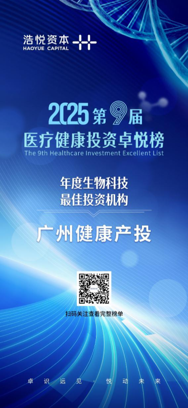 近日,浩悦资本正式发布了“第九届医疗健康投资卓悦榜”,广州金控集团旗下广州生物医药与健康产业投资有限公司(以下简称广州健康产投)荣膺“年度生物科技最佳投资机构”奖项。此外,广州健康产投董事长薛哲强荣膺“年度医疗健康投资家”、副总经理冯致仲荣膺“年度医疗健康青年投资家”奖项。