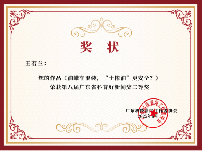 家医杂志社送评的《油罐车混装,“土榨油”更安全?》一文,内容紧跟社会时事热点,主题鲜明,观点权威,文字生动,在众多参赛作品中脱颖而出。这一荣誉既是对家医杂志社深耕健康科普领域四十余年的专业认可,也彰显了其在推动全民科学素质提升中的标杆作用。