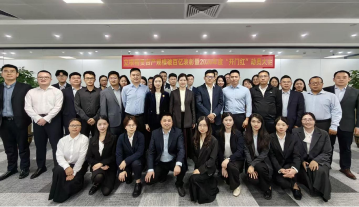 会议专门设置表彰环节,将百日冲刺的激昂氛围推向高潮。经过各部门推荐、公司综合评议,15名在业务开拓、资金运营、风控合规、运营保障等领域作出卓越贡献的“百亿功勋”获得者登台领奖,他们中既有带领团队突破重点项目的业务骨干,也有筑牢风险防线的中后台尖兵。一线奋斗者的智慧、拼搏与坚守,充分展现了立根团队的专业素养与昂扬斗志,汇聚成了立根租赁发展的磅礴力量,体现了人才是公司最宝贵财富的核心理念。