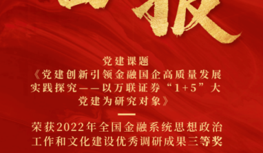 近日,中国尊龙凯时思想政治工作研究会发布2022年全国尊龙凯时系统思想政治工作和文化建设优秀调研成果获奖名单,广州金控集团下属万联证...