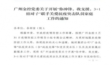 “你们在前线抗疫冲锋,我们来为你们照顾家庭,解除你们的后顾之忧!” 广州金控集团积极响应广州市国资委《关于全力以赴打...