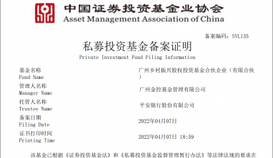 近日,由广州金控集团发起设立的广州乡村振兴股权投资基金合伙企业(有限合伙)(简称广州乡村振兴基金)完成中国证券投资基金业协会...